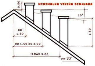 Visina dimnjaka određena je visinom zgrade , a da bi ispravno funkcionirao, dimnjak mora biti visok najmanje 5-7m. Prema propisima grlo dimnjaka mora biti najmanje 1 m. iznad površine krova. Ukoliko se dimnjak nalazi blizu sljemena grlo mora nadvisivati sljeme bar 50 cm; tako da bude izloženo slobodnom strujanju zraka.